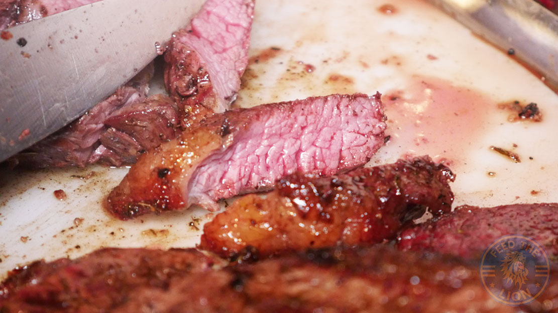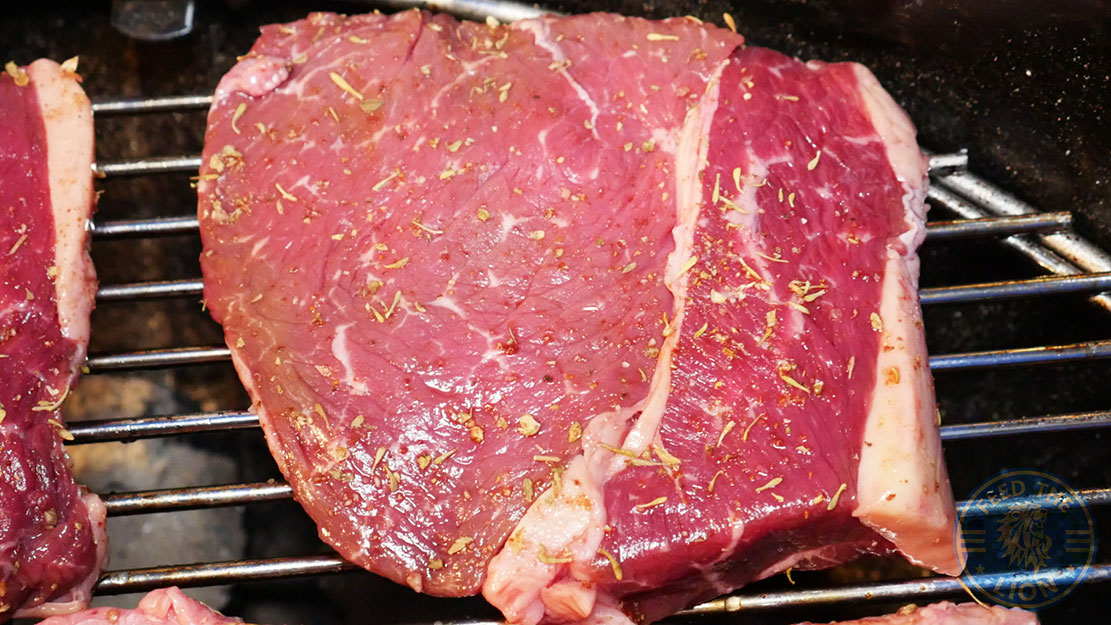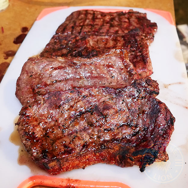 These come in a pack of 2 x 8oz steaks with the following cooking tip: “Hot Pan. Sear 2 minutes on both sides. Leave on low flame until done to required taste. Well done: 15mins. Medium: 10mins. Rare: 5mins. Let rest for 5 mins.”