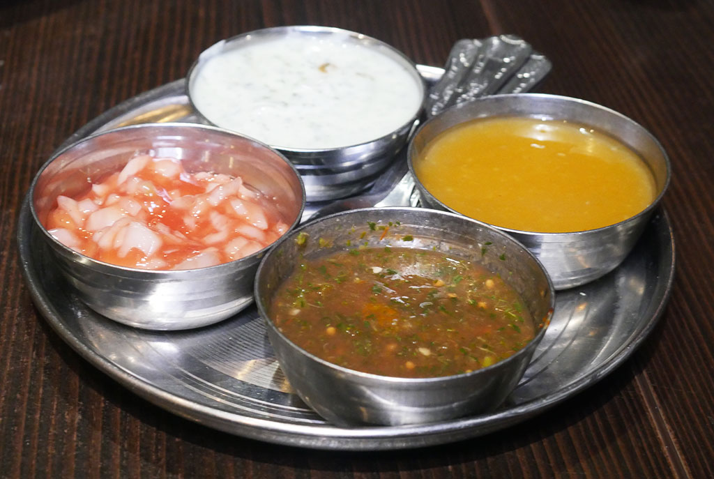 And with these came a quartet of varied and quite delicious chutnis and sauces which helped prime our taste buds for the curries thereafter.