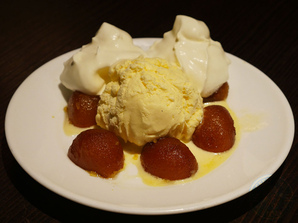 We know what you’re thinking. While these warm, soft Gulab Jamon balls of saturated goodness were presented warm so as to contrast against the vanilla ice cream, we couldn’t get past the misplaced dollops of cream. It just made the entire plate all messy after melting in a hurry. Not quite.