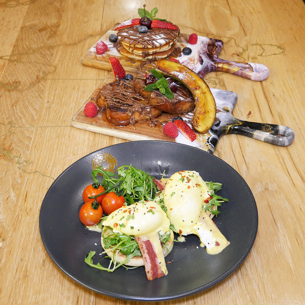 Eggs Benedict – Turkey rashers on sourdough bread with a poached egg. served with hollandaise sauce, £7.25