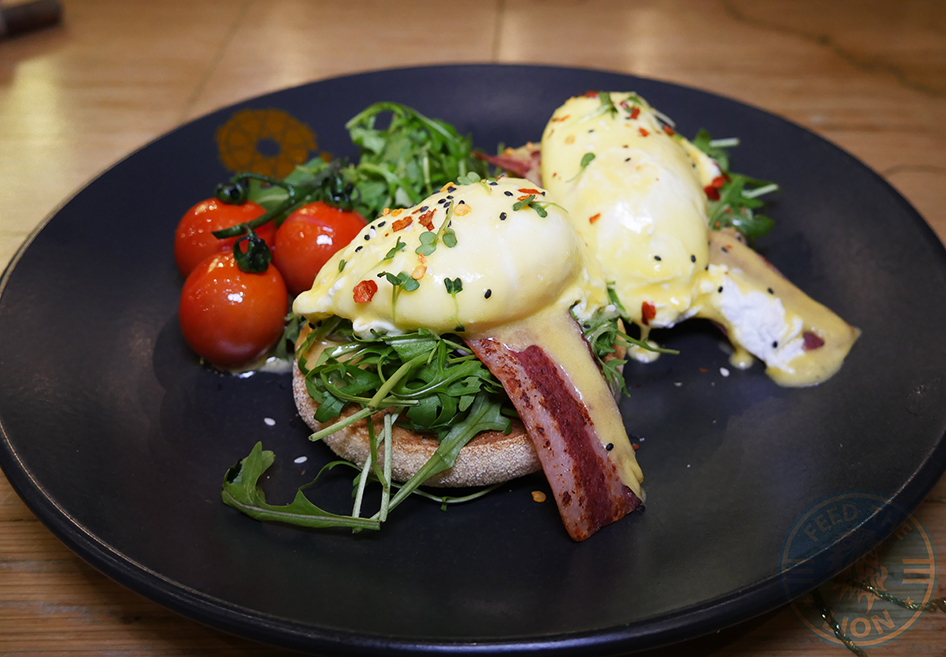 Liberally covered in a well made hollandaise sauce, the eggs in this attractively plated Eggs Benedict turned out semi-soft, with the Turkey rashers, while adding that required smoky edge, being of a standard variety.