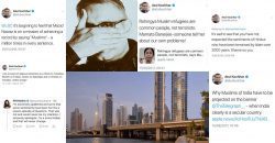 Last year in September, he queried an Indian Today news editorial title “Rohingya refugees are common people, not terrorists” by requesting that someone tell Indian politician Mamata Banerjee “about our own problems”.