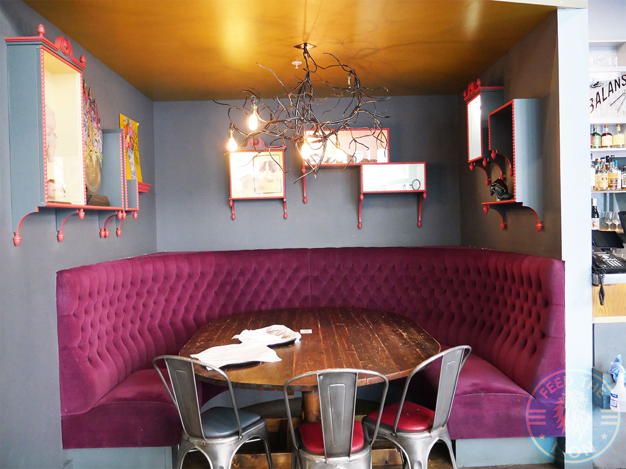 With a keyhole symbol used as a recurring decorative theme throughout the light and airy interior, Balans’ alcohol bar is confined to one side of the premises allowing for plenty of seating space, including a semi-enclosed booth, well away towards the other end.