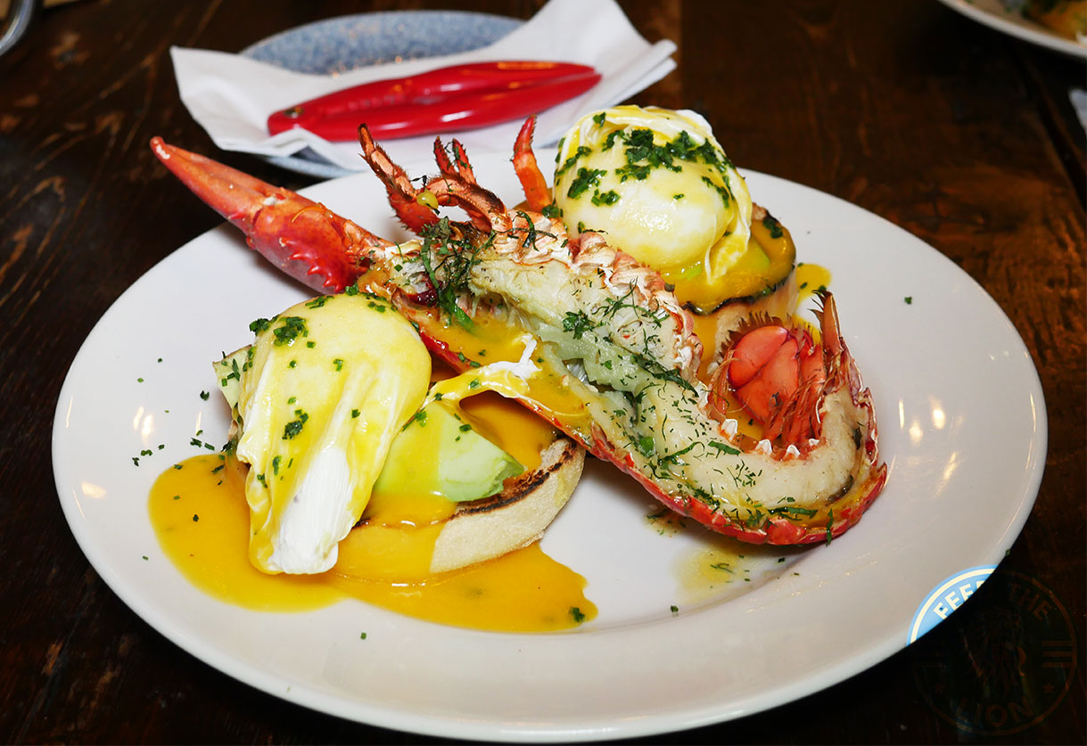 High Society Lobster Benedict – 1/2 lobster, poached Woodland Farm eggs, avocado crispy bacon on an English muffin, with homemade Hollandaise sauce, ÂŁ17.00