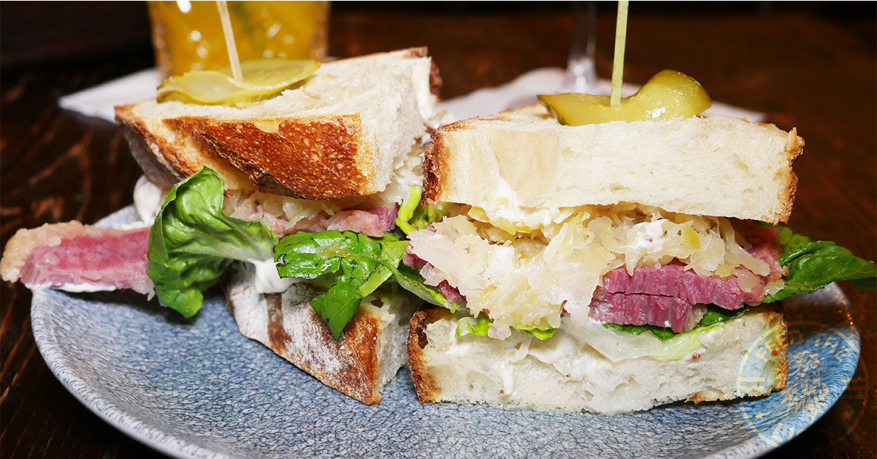 What could be better than thick slices of crusty-edged toasted sourdough which house premium salt beef, a thick layer of finely chopped sauerkraut, and varied condiments?