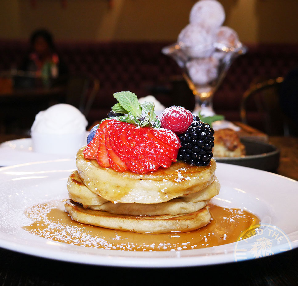 A generous portion of American Pancakes these; so don’t expect the thin British version, but rather the wonderfully thick and expertly judged spongy variety.