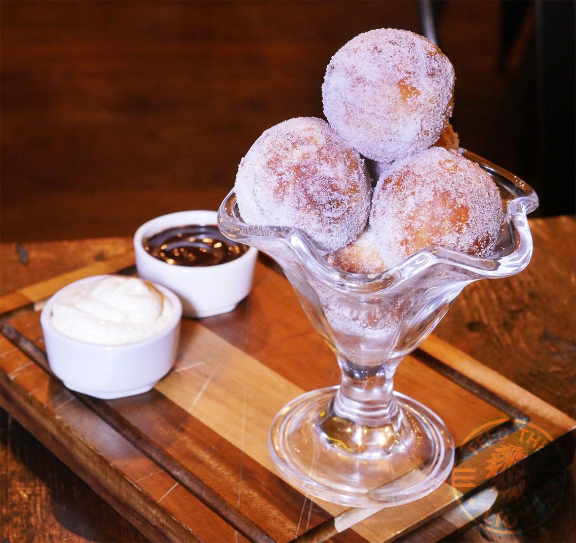 RECOMMENDEDThese freshly made doughnuts were light and airy, dunked and rolled in plenty of sugar, and presented with an outstanding chocolate sauce and some vanilla flavoured cream.