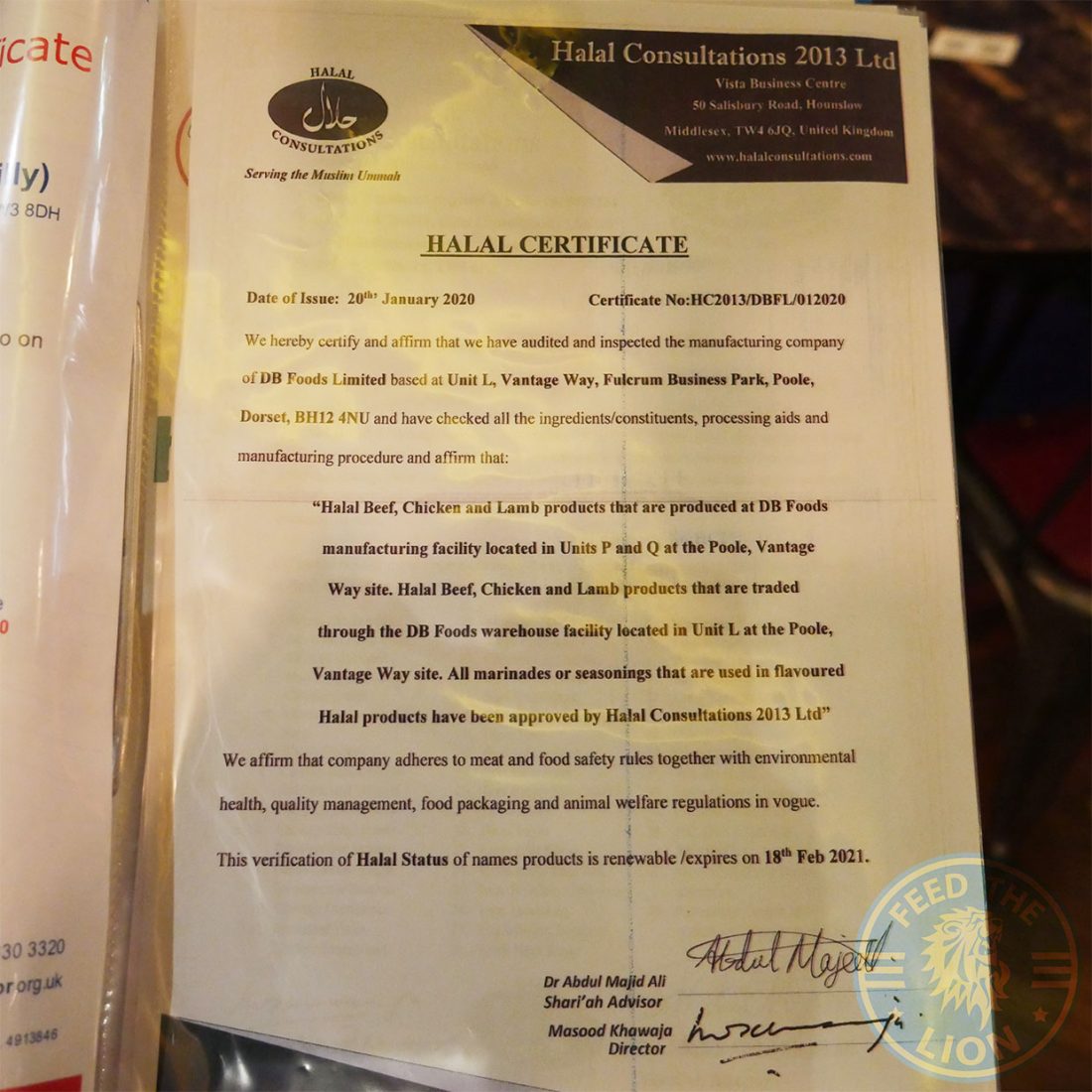 HALAL STATUS Halal beef & chicken (prepped & cooked separately) • Alcohol & pork served