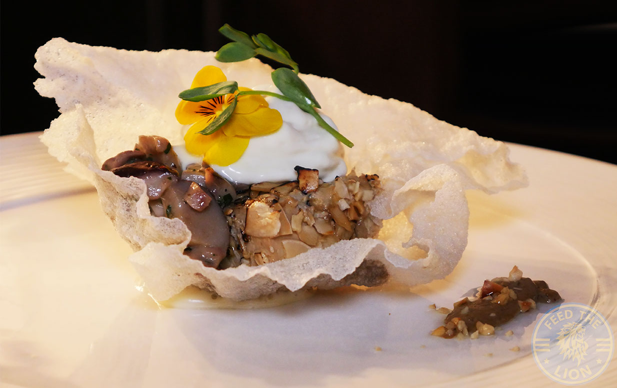 This Foie Grass Pate was actually made from Halal duck liver pâtte, we were told, and carefully placed, with a dollop of smooth Porcini Cream, into a delicate, wafer-thin rice cracker.