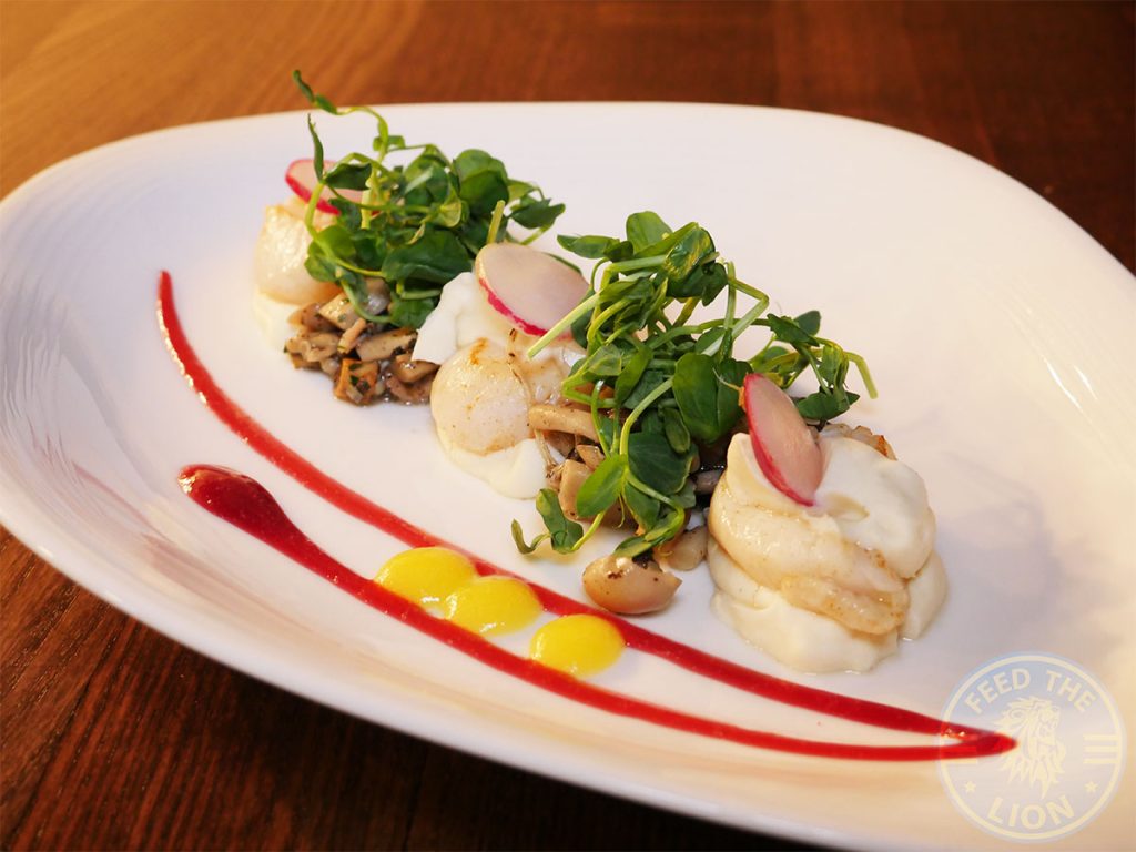 What could be better than delicately pan-seared scallops personifying tenderness, swaddled in a mellow white cream that adds a touch of maltiness, and juxtaposed with diced “forest” mushrooms all soft and buttery?
