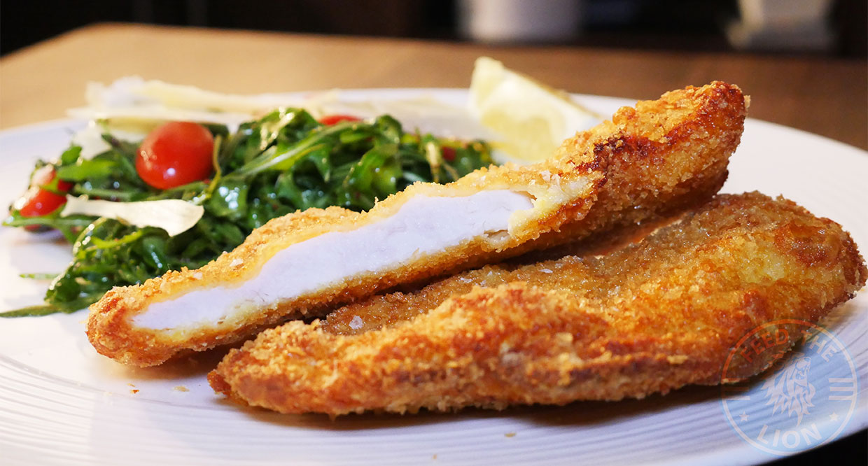 For the moment, Bella served us a large and flattened piece of chicken that was coated in an attractive, crispy-golden breadcrumb, and paired with rocket leaves and cherry tomatoes.