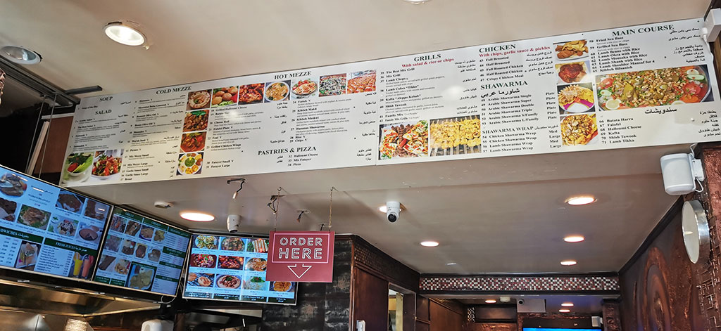 As well as to its “must try” broasted chicken, it also serves up lamb and chicken shawarma, fatayer, pizzas, lamb cubes ‘tikka’, kafta ‘aleppo kebab, and shish tawook.