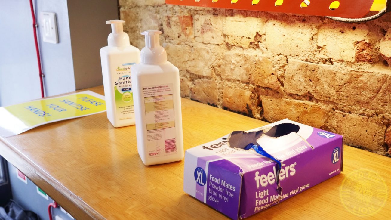 Markings at the front of shop, which designate a 1-meter social distancing rule, had us waiting our turn outdoors before being invited in to sanitise our hands, choose to make use of a box full of vinyl gloves, and sign a track-and-trace book. All good so far.