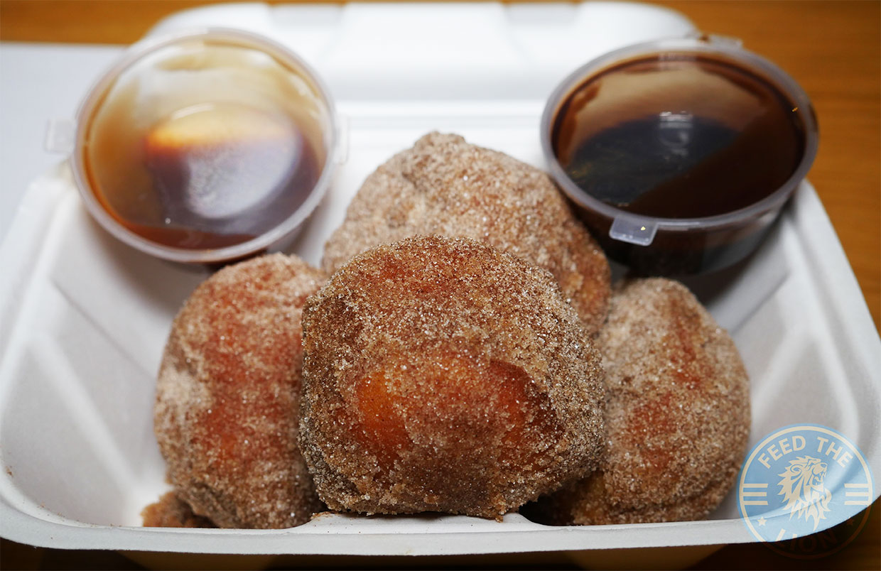 Instead, we were treated to balls of hot, fluffy goodness that were positively enveloped in an avalanche of fine cinnamon sugar.