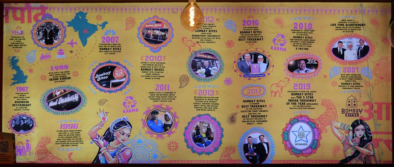 While an elaborate timeline proudly depicts the family’s culinary journey in the form of a beautifully designed wall mural at the Evington branch, Ahmed says Bombay Bites is now ready to embark on the next phase of its journey as a franchise business.