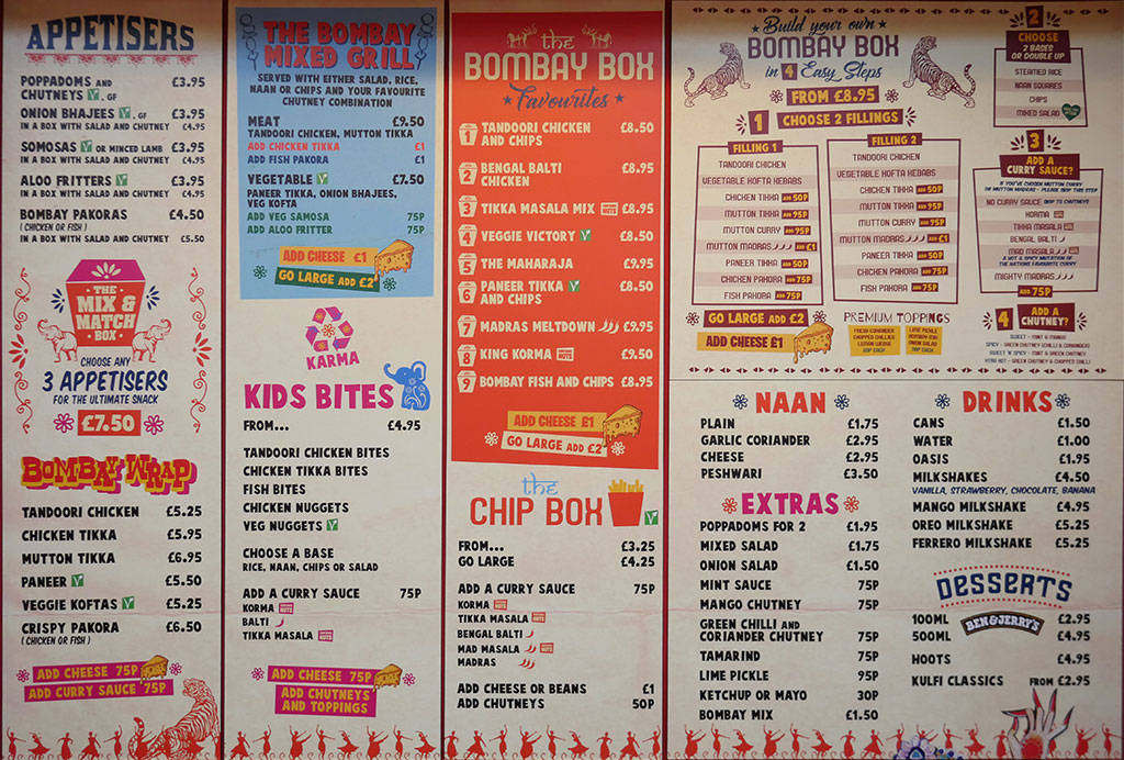 This box concept is also cleverly carried through the rest of the menu, including the option of upscaling their range of appetisers into a box with salad and chutney, as well as Chip Boxes that involve fries being covered in a curry, cheese or beans, and a chutney, all from just £3.25.