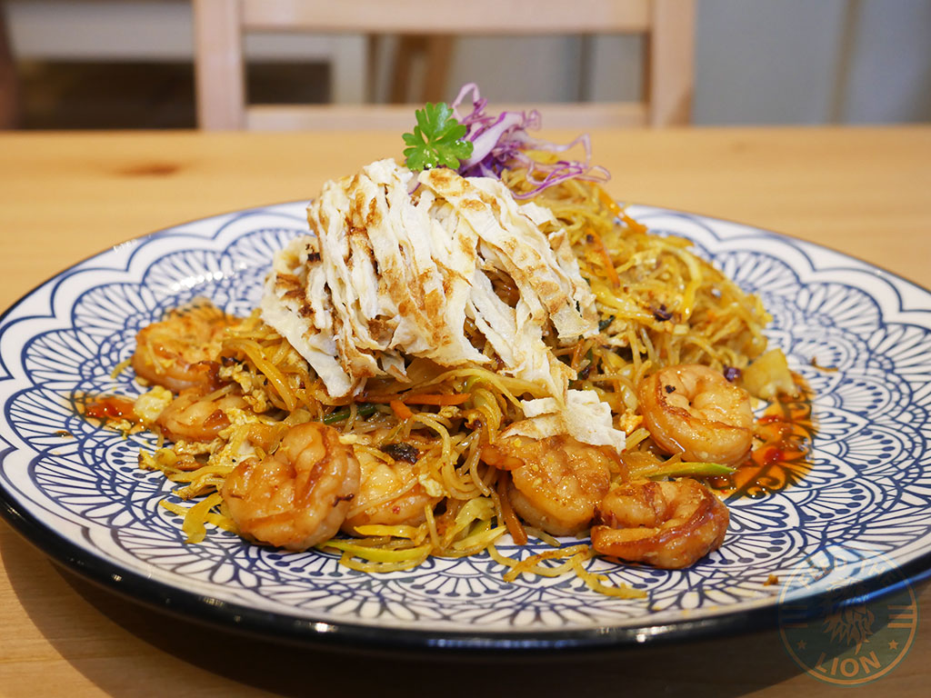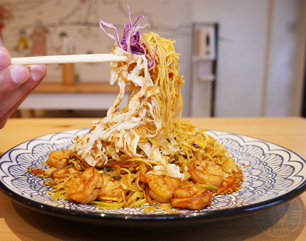 A large plate of Singapore Prawn Rice Vermicelli, with plenty of soft and succulent prawns, topped with strands of omelette; but which required the light chilli sauce to help bring together what was otherwise a delicately spiced dish.