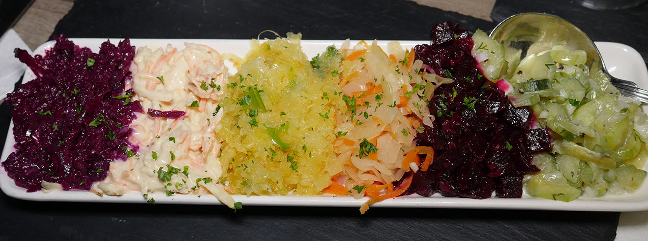 As for the salad, then there was beetroot, cucumber and sour cream, two kinds of coleslaw, red cabbage, and sauerkraut – all of which were inhouse made.