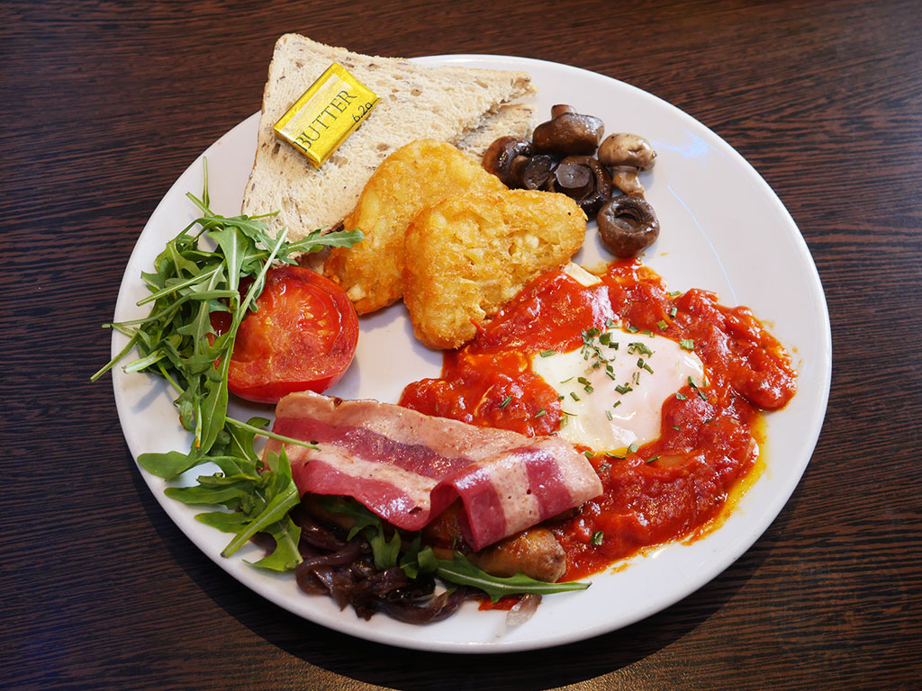 If you fancy something Middle Eastern, then it has to be their Shakshuka, with a freshly poached egg nestled in a vibrant spicy tomato sauce, spicy beef sausages, macon beef rashers, hash browns, and so much more.