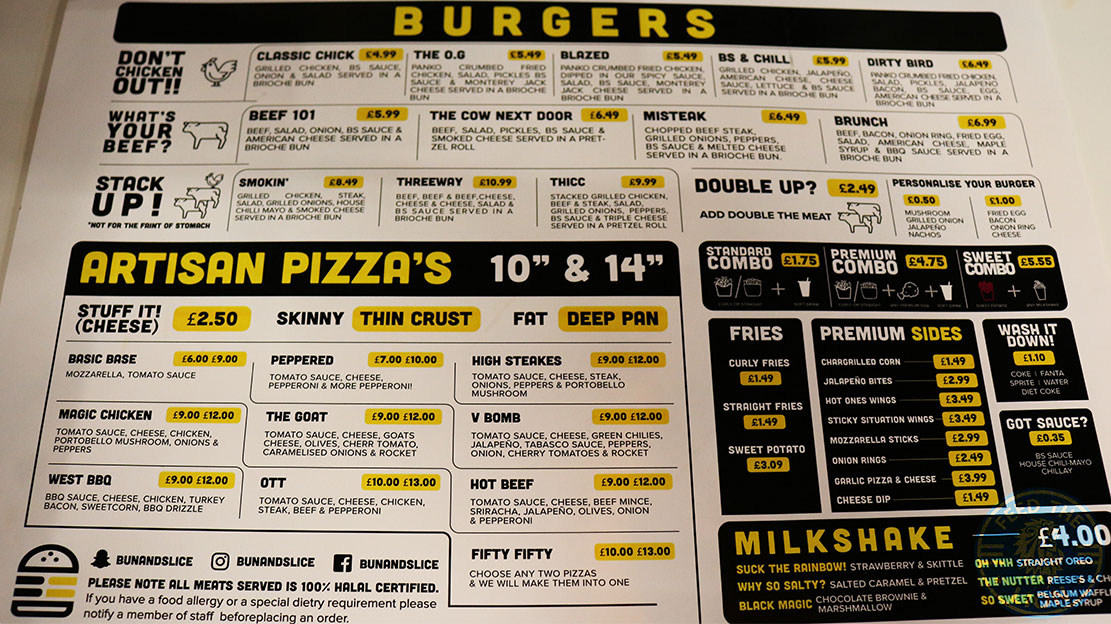 0 Comments 3 Apr '19 menu Bun & Slice Halal Manchester restaurant pizza burger menu Bun & Slice Halal Manchester restaurant pizza burger Share With: