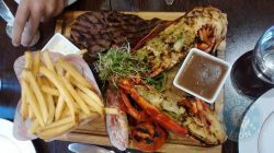 We went for steak and lobster to share, a steak ciabatta, and lamb shank on a bed of mash potato.