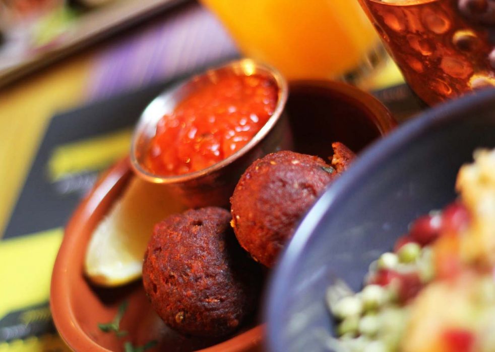- Nargisi Quail Egg Koftas – Spicy lamb mince wrapped around quail eggs: crumbed, fried & served with our smoked tomato chutney.