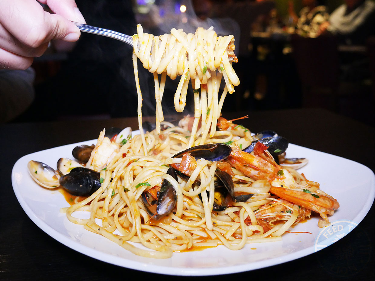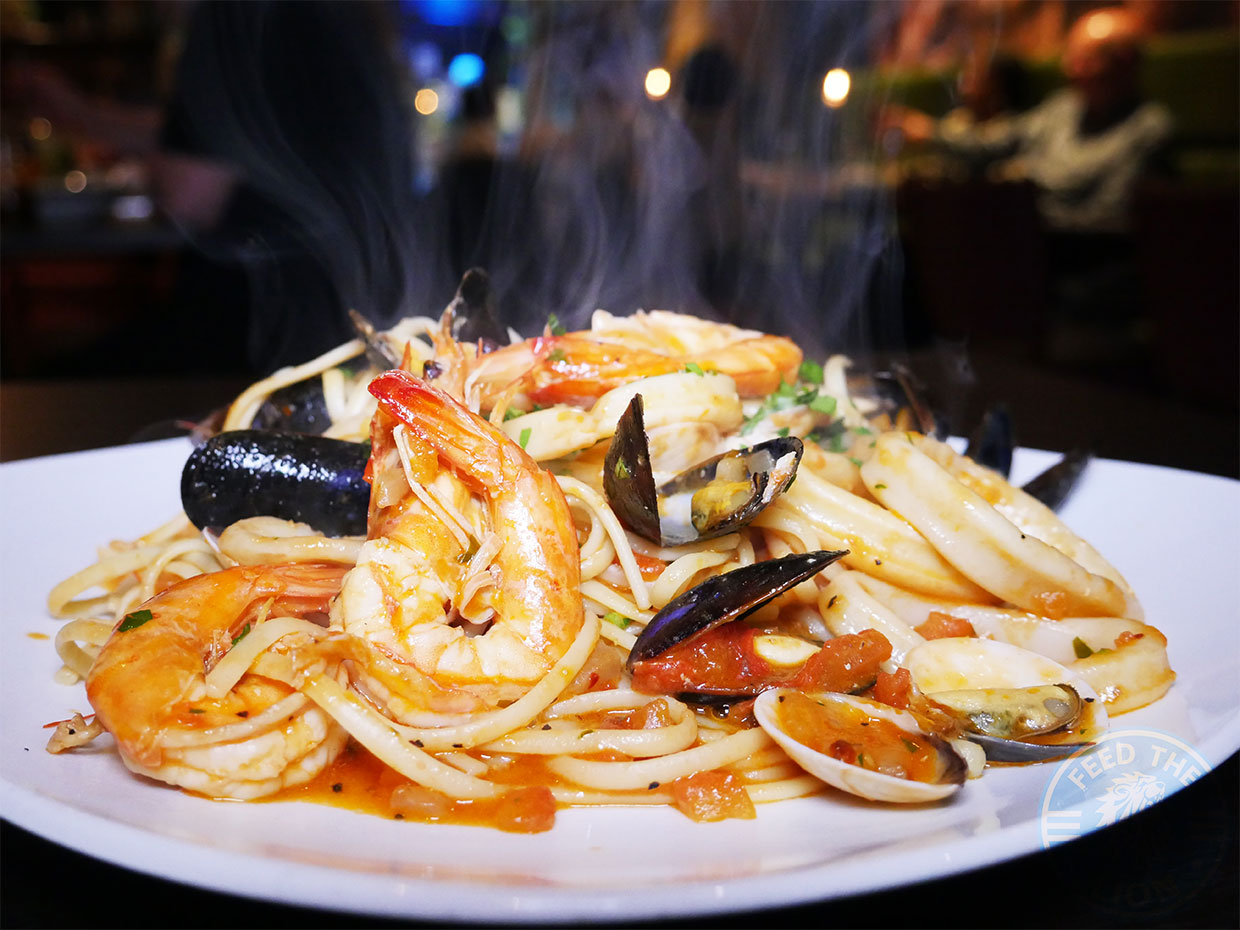52. Linguine Allo Scoglio – Sea food pasta dish with king prawn, tiger prawns, clams, mussels and calamari, £15.95