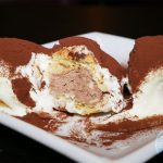 For premade desserts, these large profiteroles were, to our collective surprise, pretty darn good, containing as they did oodles of not ordinary cream, but chocolate mascarpone.
