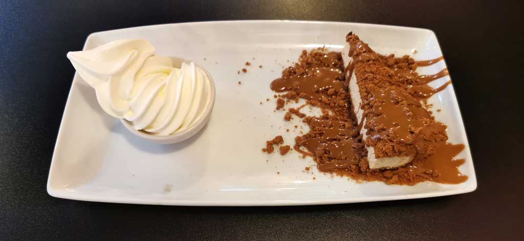 While the presentation of this Lotus Biscoff Cheesecake was at best slap dash, this was always going to struggle after being overloaded with the crushed biscuits and all that sauce.