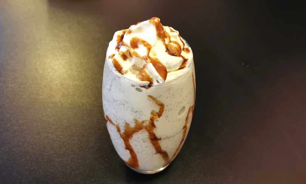 A well made Oreo shake, which was quite thick and luscious, and was topped with caramel sauce.