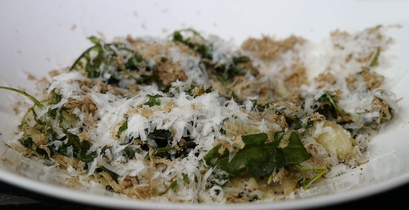 Enoki Mushroom – With Truffle Cream, Dehydrated Rocket Leaves