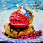 The water, poured through the plate and into the pot beneath, released dry ice plumes that spilt over onto the table in breath-taking, billowing gossamer waterfalls not unlike the white mists of the mountains where the little chef last landed.