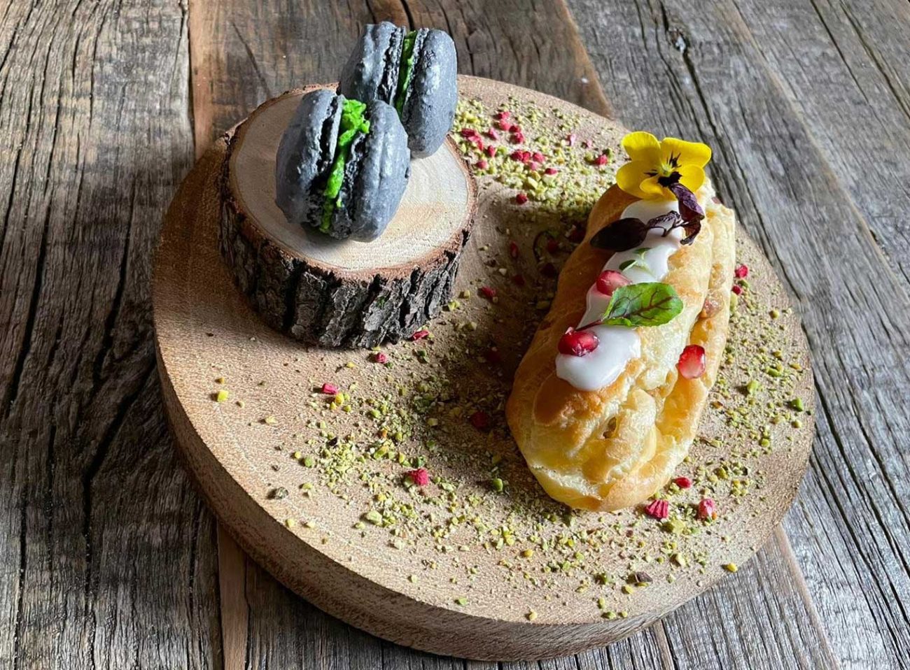 - The Campfire: Wasabi, broccoli, truffle, charcoal macaroon, aubergine éclair.