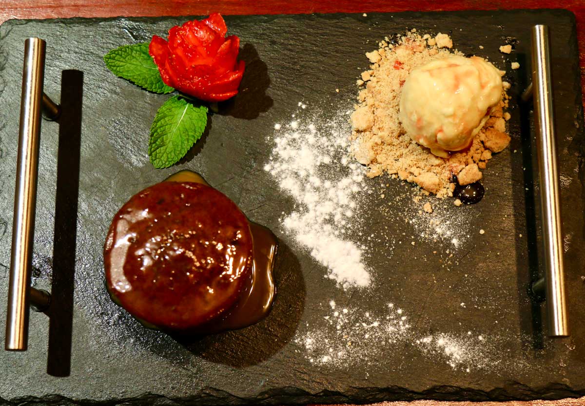 The dessert looked amazing; but you would have to ask my wife about the taste as I am not a dessert person. However, despite being completely stuffed, she still managed a few bites of the chocolate sponge cake and ice cream.