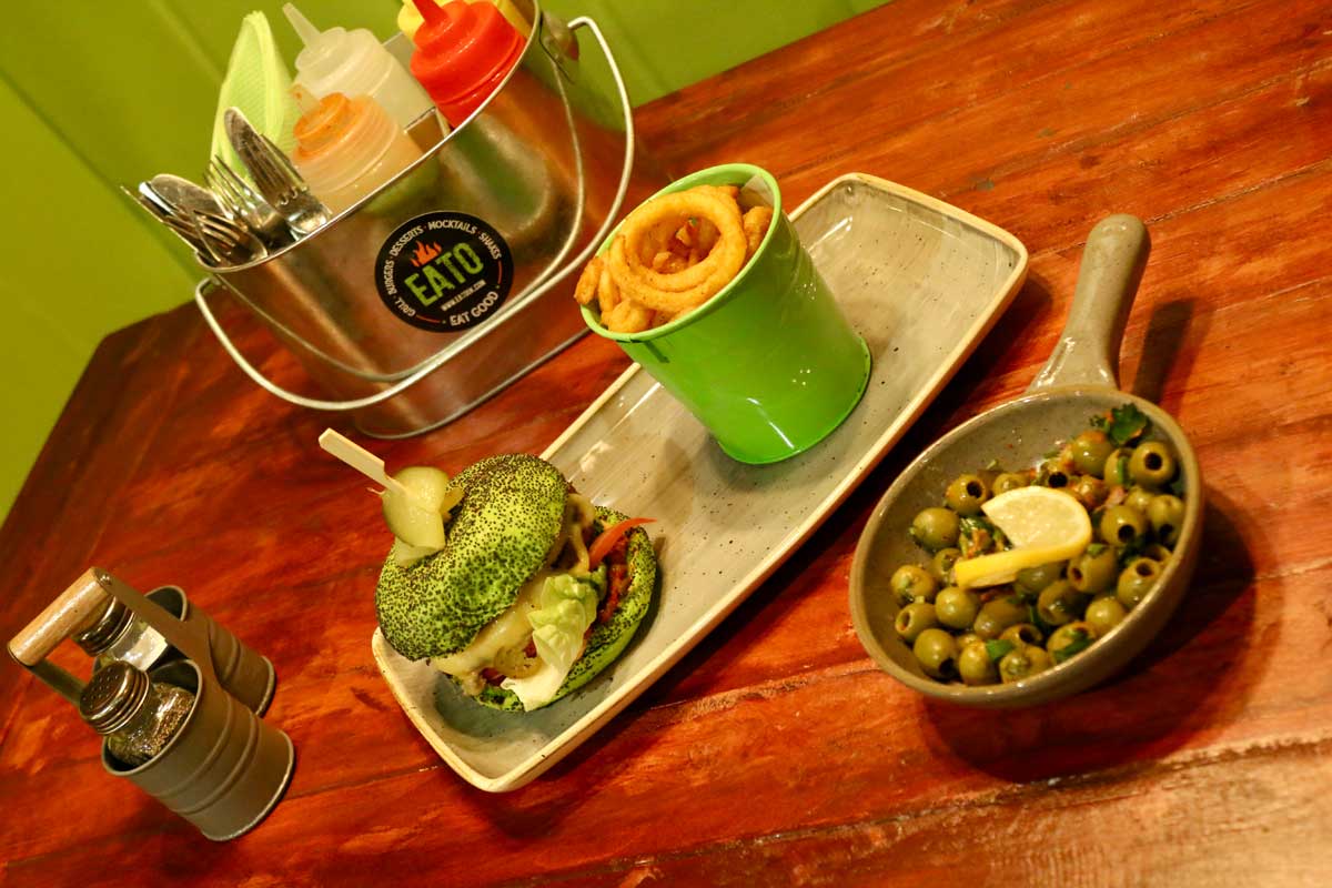 After a short pause, and taking some photos, they brought us the mains. Mexican salsa burger served with curly fries; Eato’s signature burger served with their Eato rice; Sea bass; and a portion of Mac and cheese chips.