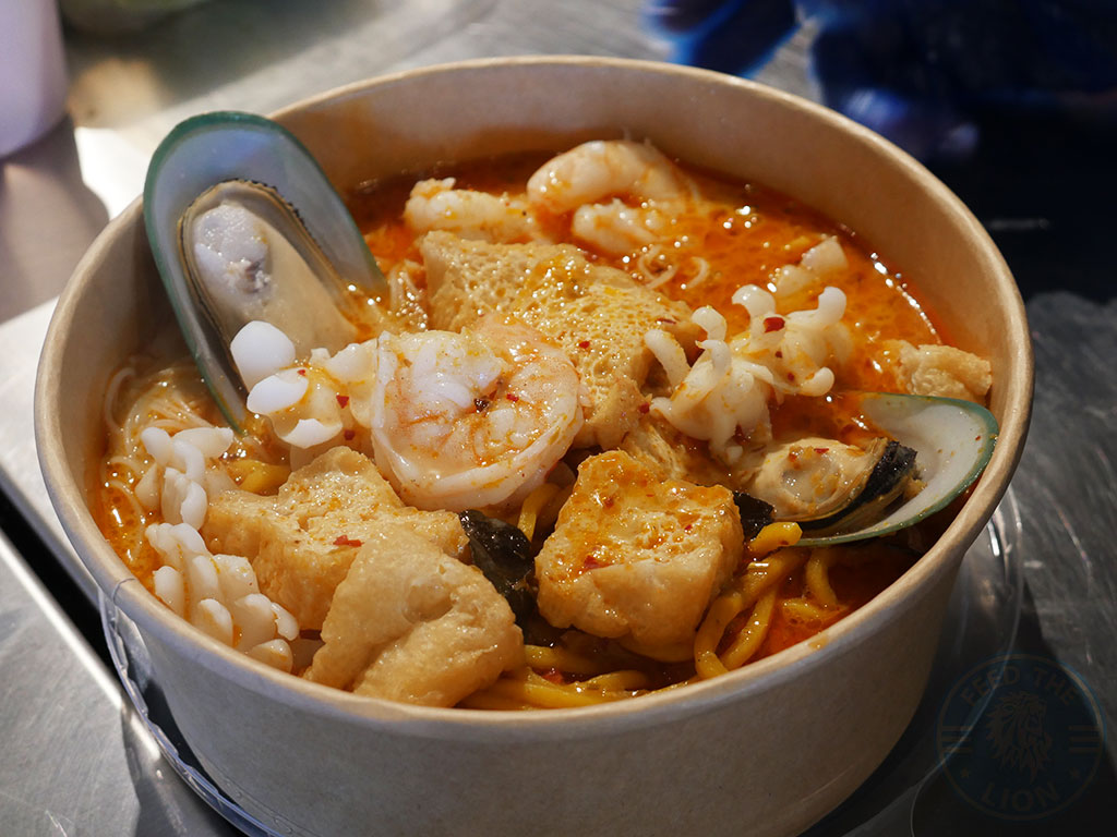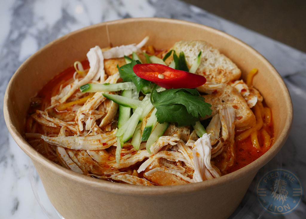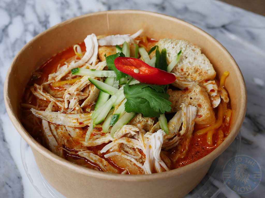 Curry Laksa (Chicken) – Choice of mussels, prawns, calamari or shredded chicken with vermicelli & egg noodles in a thick curry laksa gravy made of coconut milk, mixed spices and herbs, £9.50