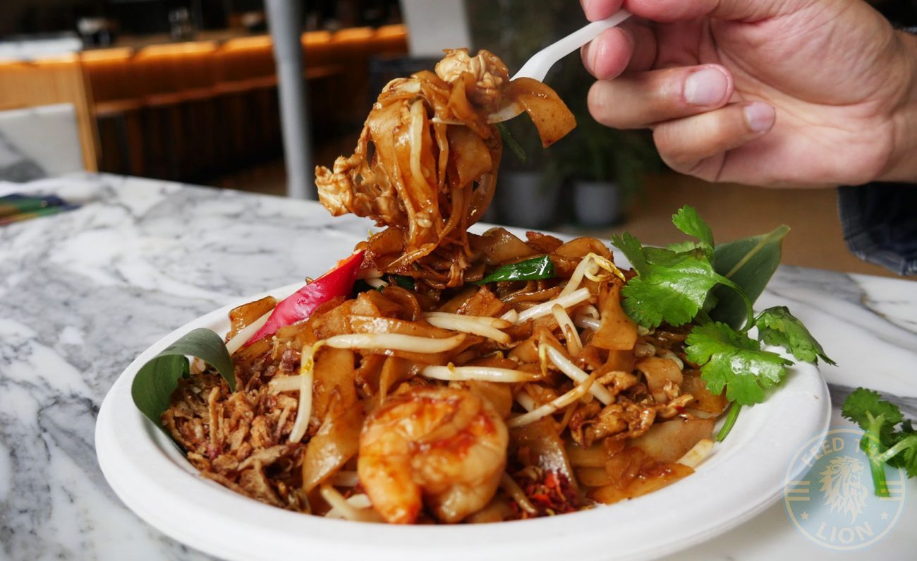 Char Kway Teow (Prawn) – Panang style wok fried flat rice noodles with egg, chilli, soy sauce, bean sprouts and chives, £8.50