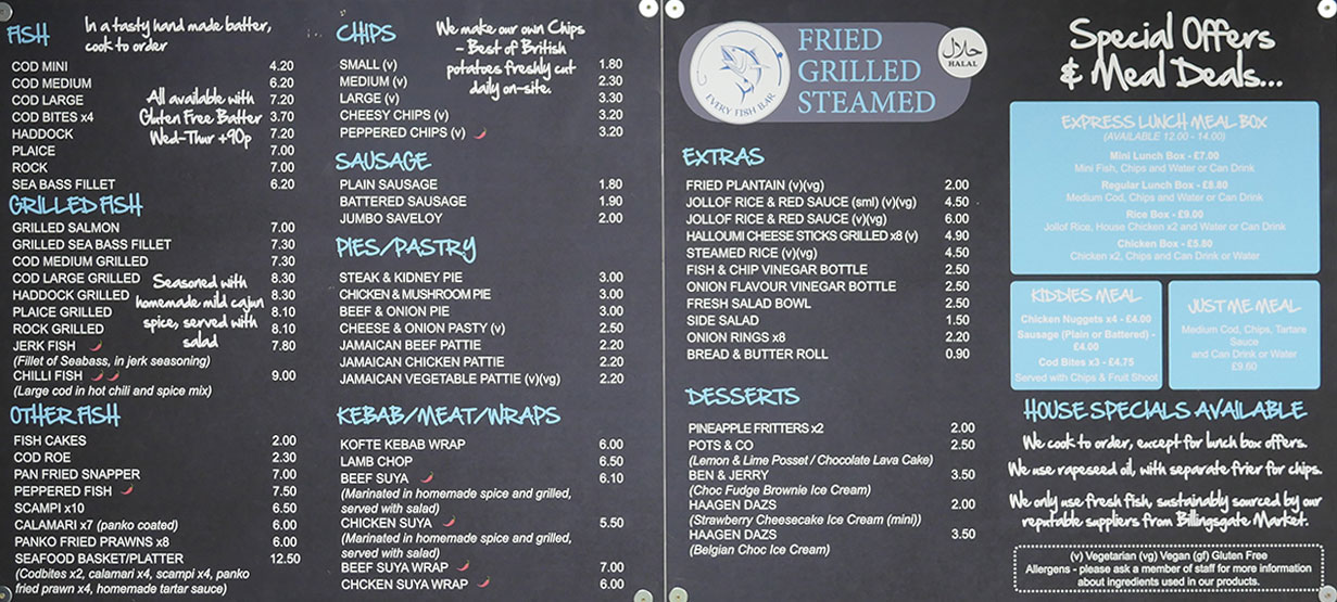 How many fish and chips shops do you know of after all, that serve Afro-Caribbean dishes like Jerk Fish, Jollof Rice, and Jamaican Pies alongside the traditional?