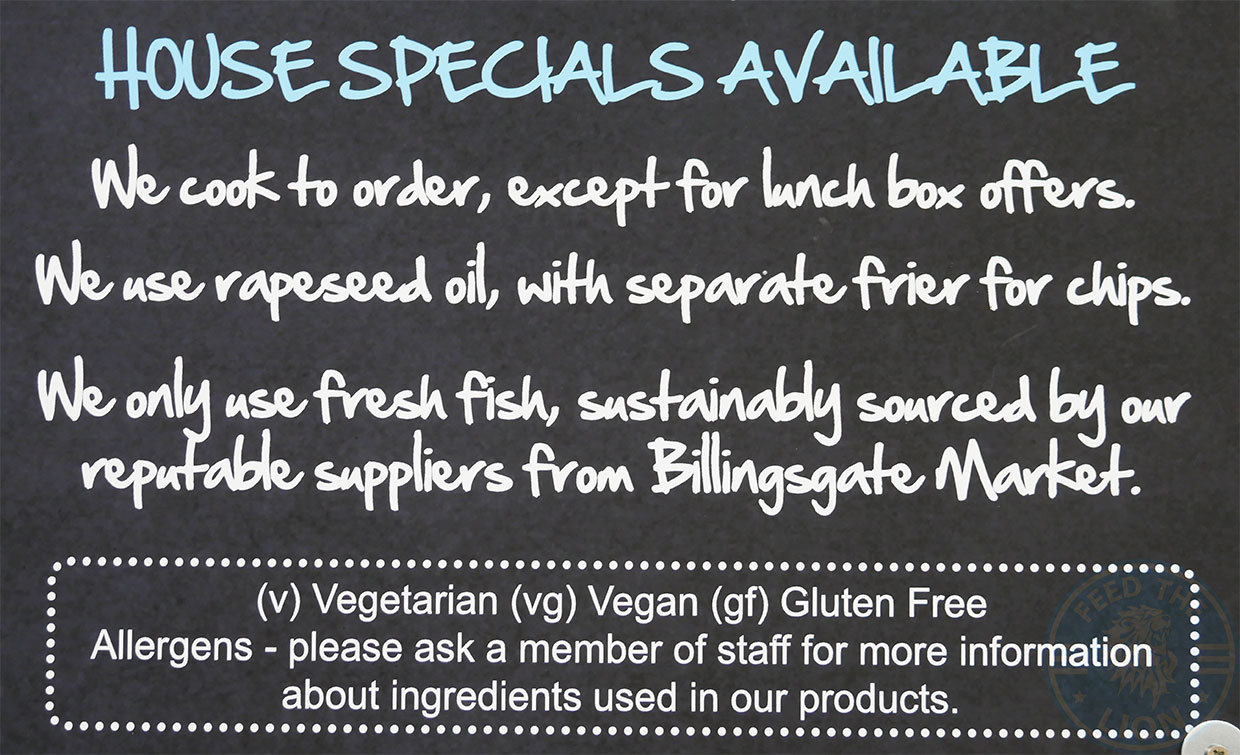 What’s more, not only are their choices for vegans, but Wednesdays and Thursdays are also reserved for the use of gluten free batter in all his fish, which is freshly delivered on a daily basis from Billingsgate Fish Market in Canary Wharf.