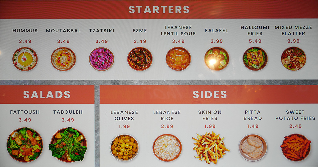 To this end, they’ve created a selection of wraps with Lebanese tortilla flatbreads positively packed with a protein, sumac onions, chopped parsley, diced tomatoes, and a choice of the following sauces: minty Pink, Spicy Tahini, garlicy Toum, Sriracha Mayo, Lebanese Chilli, or a mango chutney Amba.