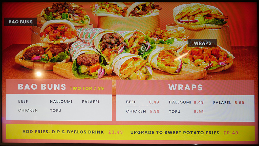 And while extra buns are available for just £2.89 each, the order can be upgraded to a meal with skin-on or sweet potato fries, a dip and a byblos beverage for an extra £3.49.