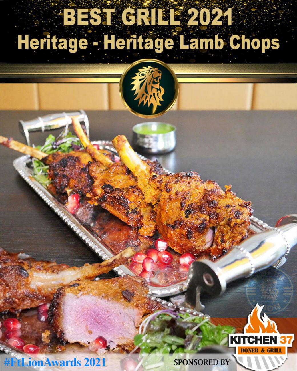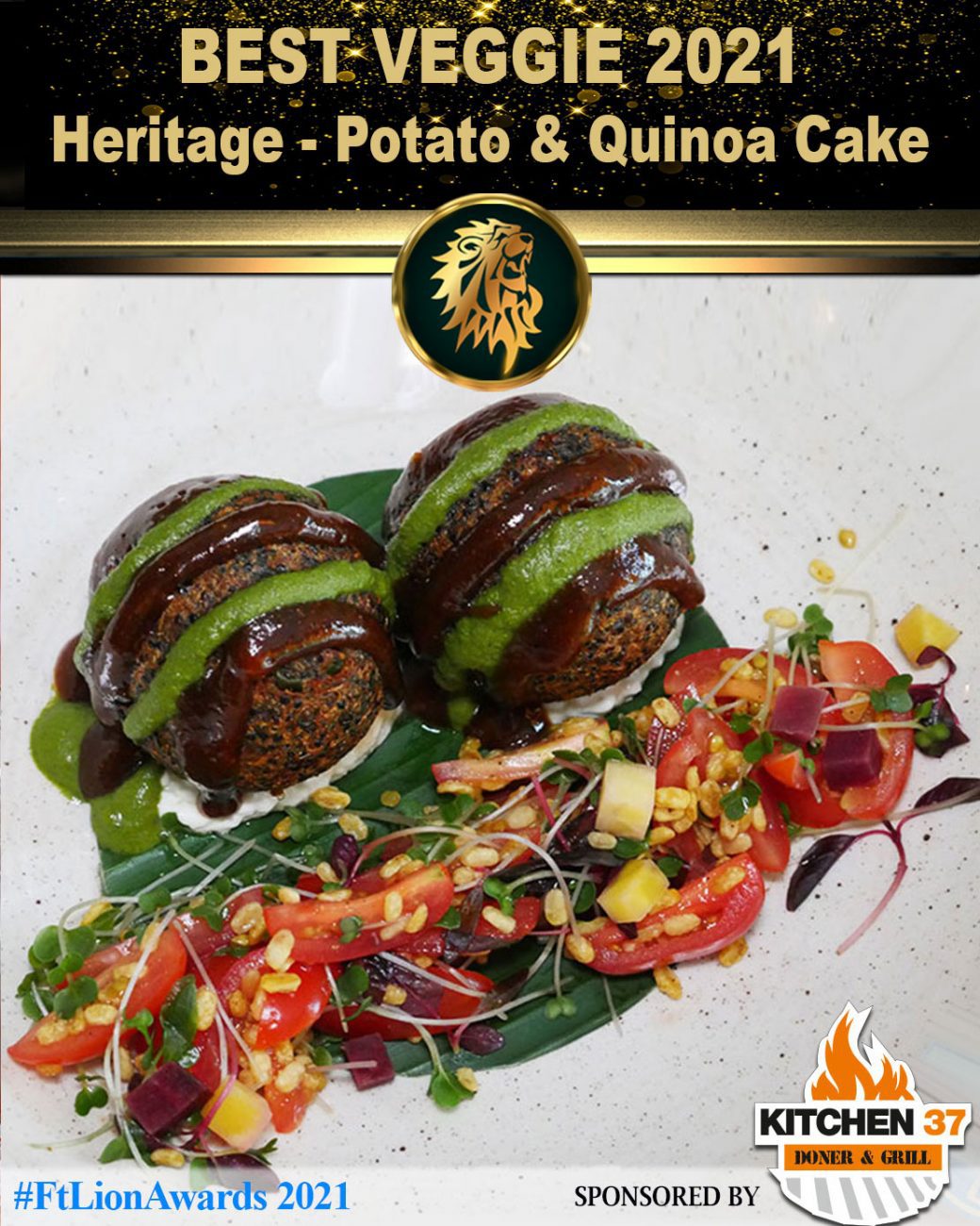 Having been nominated for seven categories this year, with its Potato & Quinoa Cake winning ‘Best Veggie’ and runner-up for ‘Best Starter’, those Heritage Lamb Chops for ‘Best Grill’, followed by the Goan Stuffed Fish coming in second for ‘Best Seafood’ , Heritage is #FtLionAwards ‘Best Newcomer’ 2021.