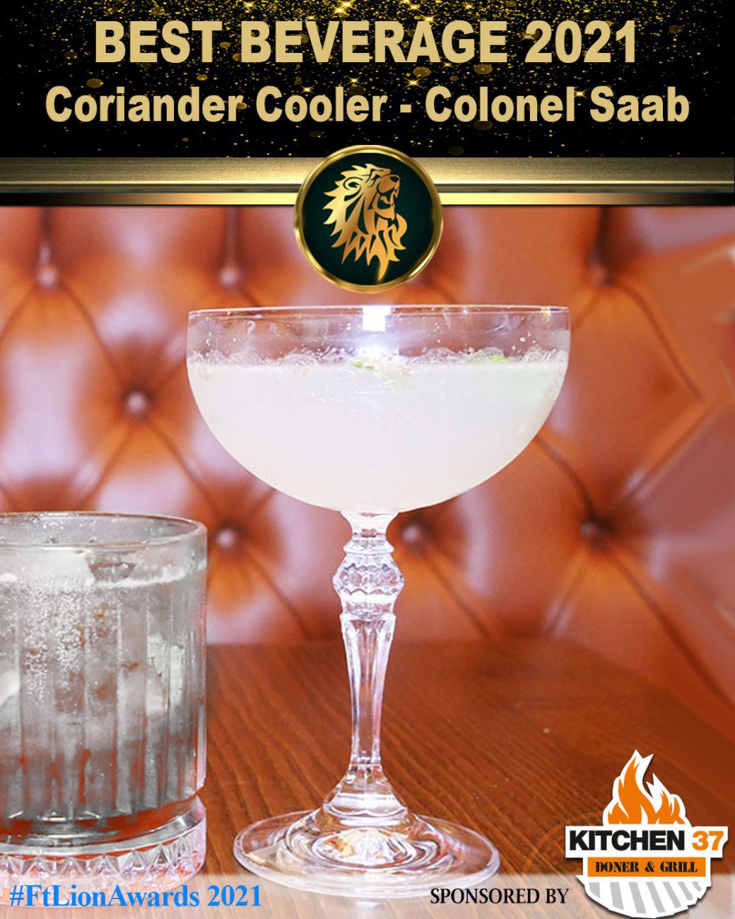 Having been nominated for best newcomer, beverage, main, grill, and dessert – before its Coriander Cooler won ‘Best Beverage and its Hyderabadi Chicken Biryani was voted both runner-up and readers’ choice – Colonel Saab is #FtLionAwards ‘Best Restaurant’ 2021!