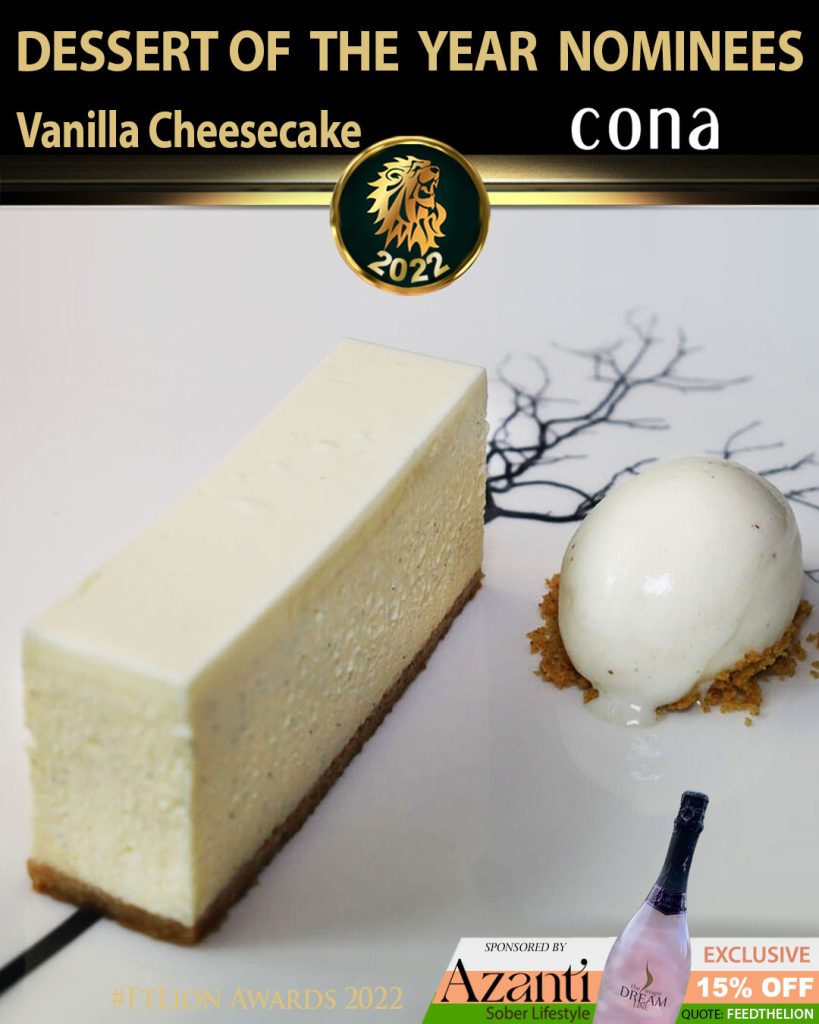 Cona steakhouse in Bradford weren’t just been rated 5/5, but have been nominated for a starter and a veggie (both being the same dish), as well as a main, seafood, and grill. Their desserts weren’t an afterthought either with this unique Vanilla Cheesecake and its unbelievable texture being achieved by combining the two techniques of baking and setting.