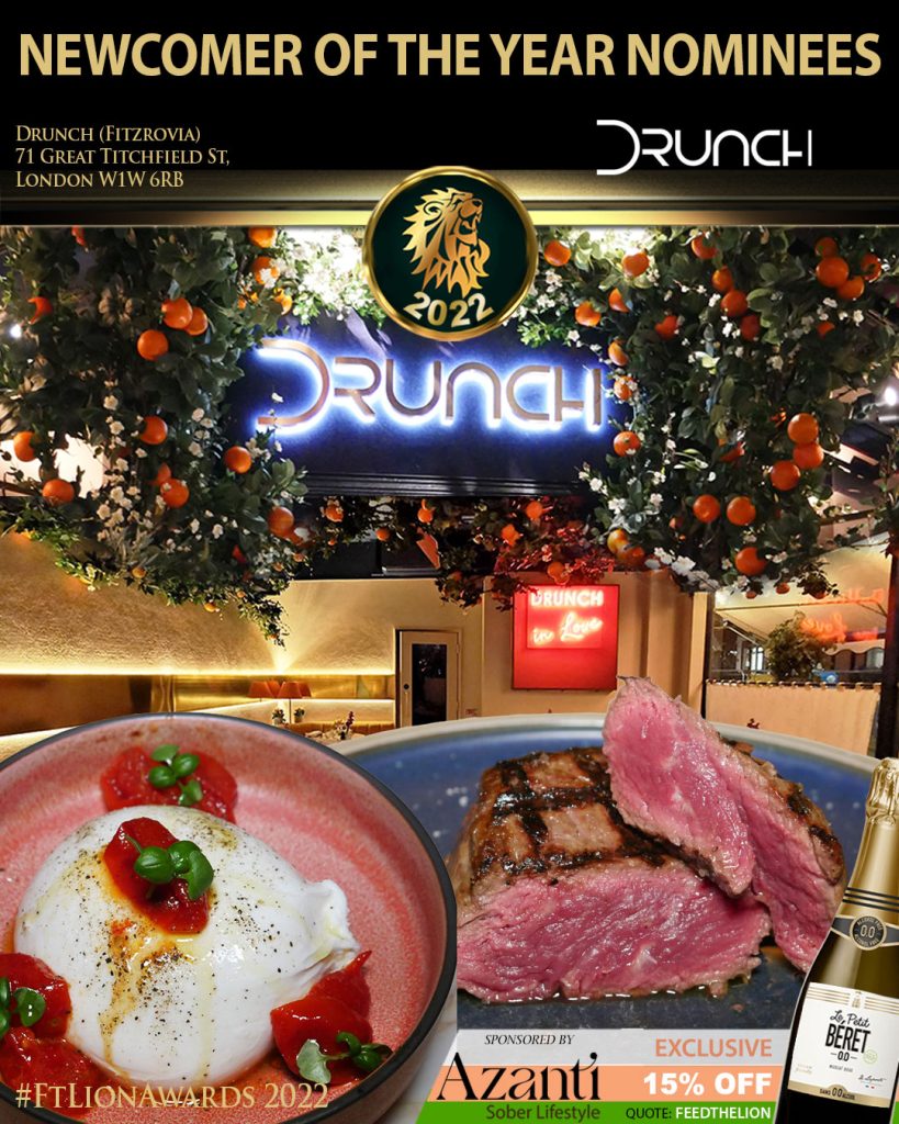 Drunch in London’s Fitzrovi is their newest branch, and one which we rated 4.5/5. Their Italian-oriented menu, quite unlike the menus at their other branches, really impressed; so much so, in fact, that they have a beverage, a starter, a veggie, and a grill dish in contention.