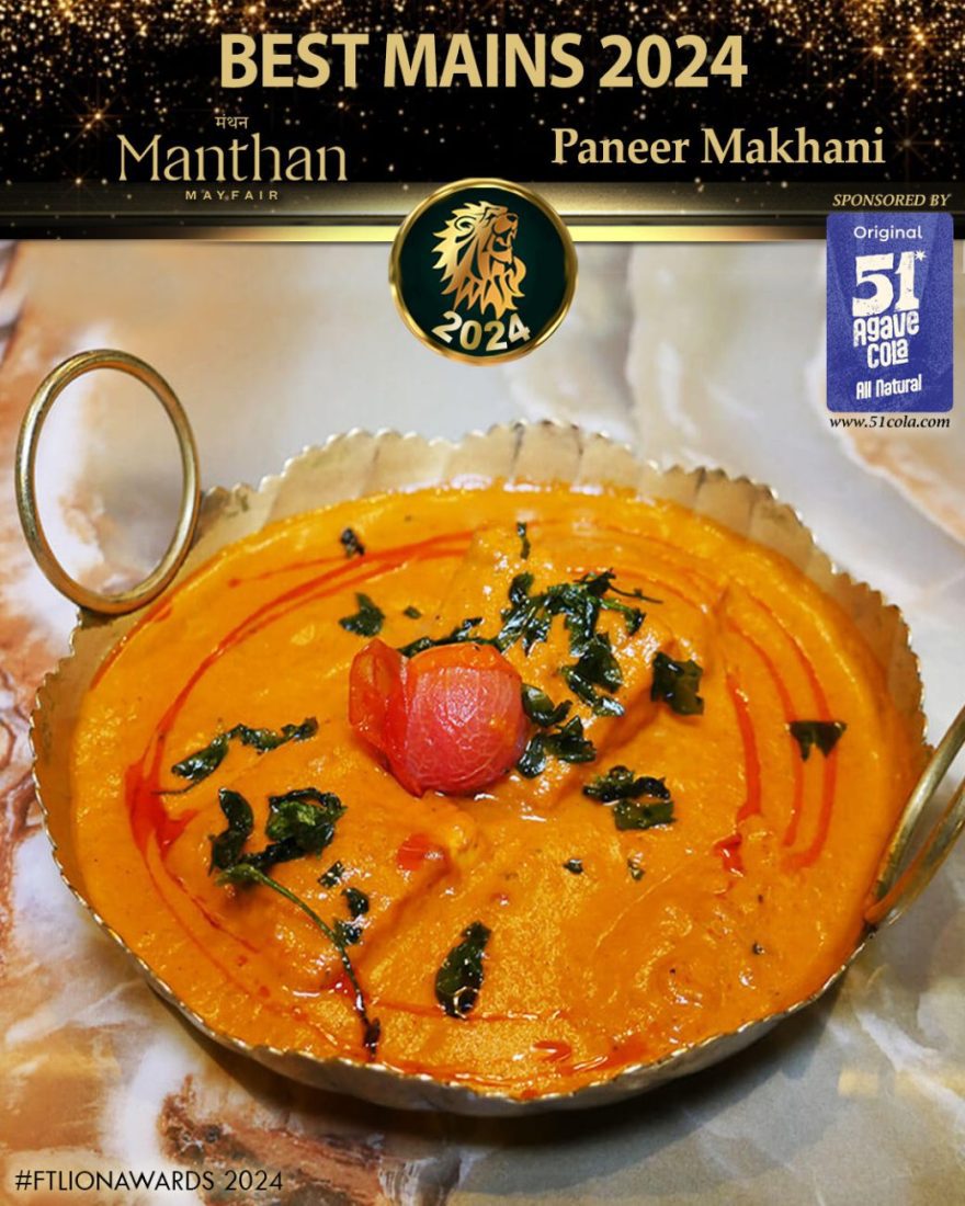 With two drinks and a starter in contention, Michelin-starred Chef Rohit Ghai’s Manthan in central London’s Mayfair served us this attractively-presented Paneer Mahkani.