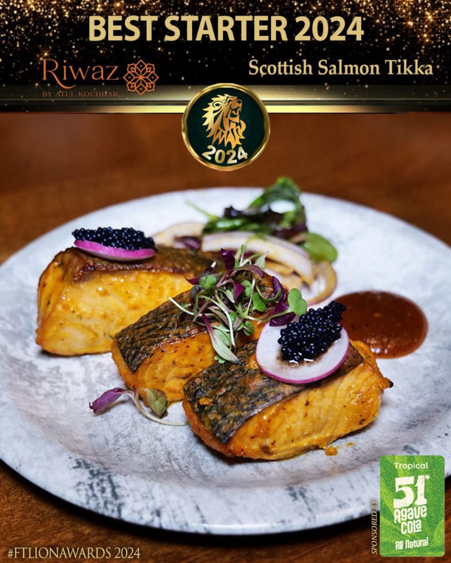 Also with a beverage having been nominated, Riwaz by Michelin Chef Atul Kochhar in Beaconsfield served us these tender segments of succulent Scottish Salmon.