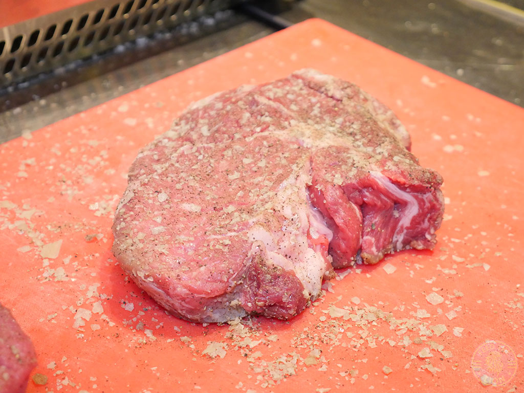 The attractively thick griddle marks on this gorgeously glazed and glistening ribeye had us salivating even before anything else.