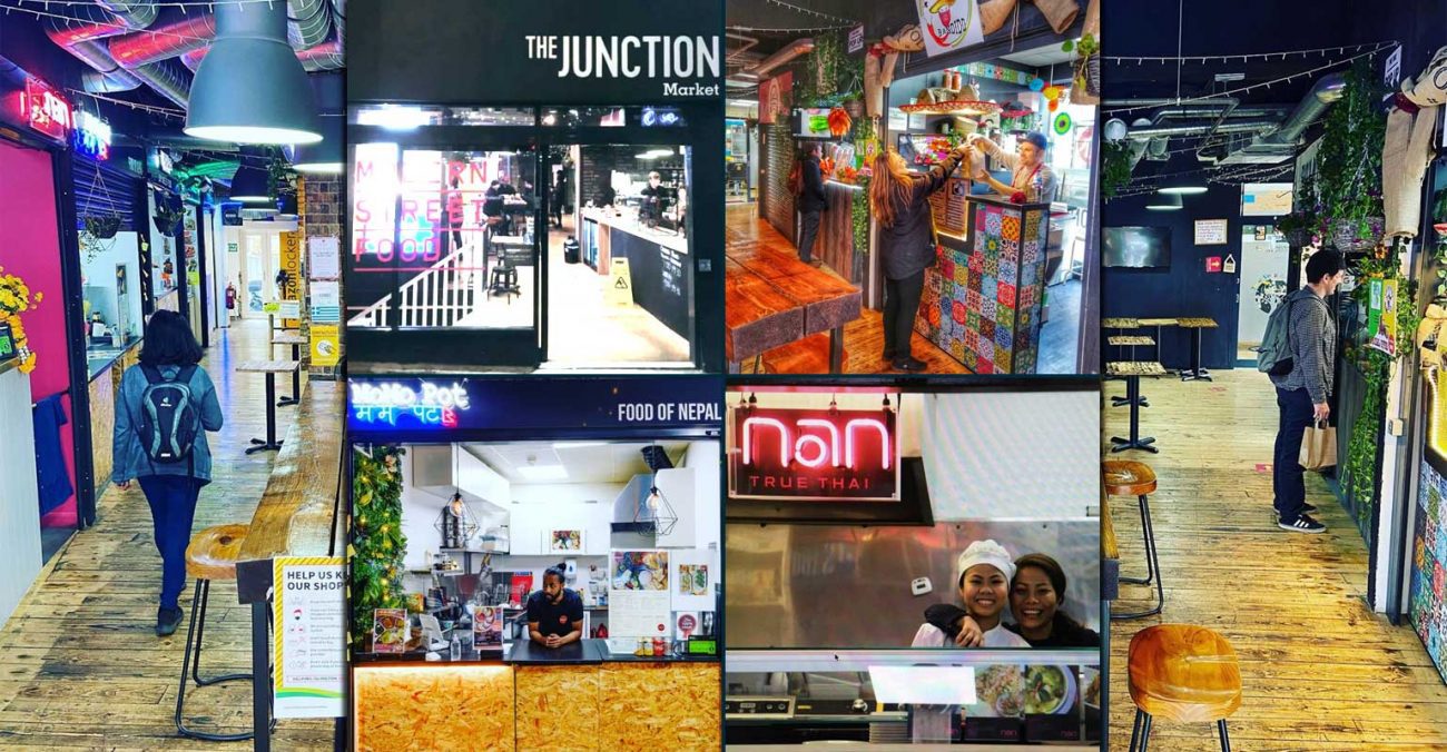 The Junction Market on Islington’s Seven Sisters Road is an indoor food court with around ten small kitchens offering a variety of global cuisines.