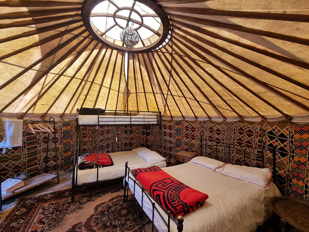 With an Arabian style interior that contains a wood burner, 2-doubles and 2-singles, this yurt is meant to serve as a detox from all digital devices and unnecessary superfluities.